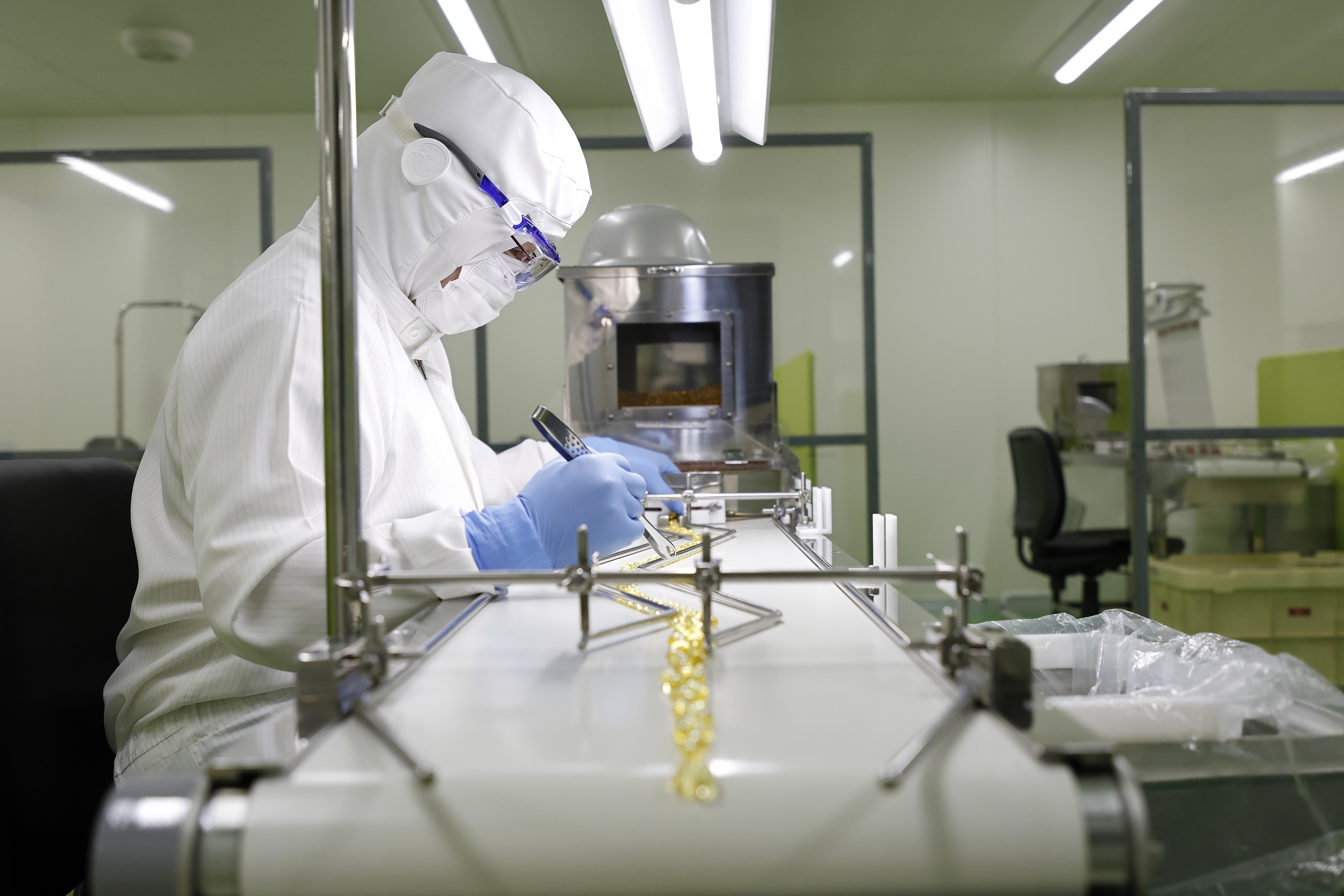 製品を製造する4つの自社工場では、健康補助食品GMPやFSSC22000等の品質マネジメントシステムを確立し、運用・維持しています。原料の受け入れから製品化までの全行程で製造管理と品質管理のチェック機能を設け、安心で安全、且つ安定したモノづくりを行っています。